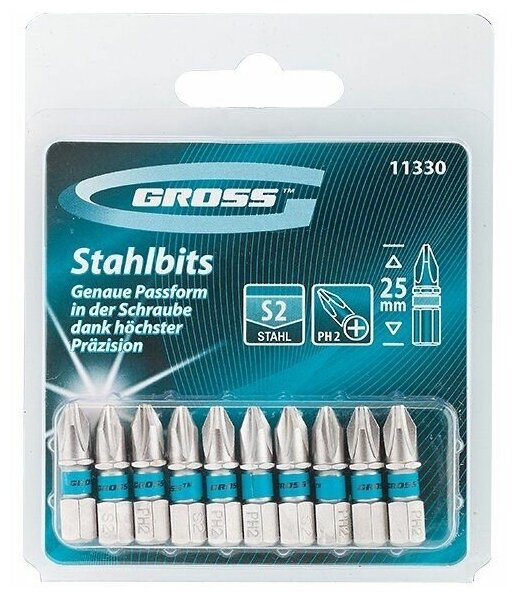 Купить Набор бит РН2х25, сталь S2, 10шт //gross .