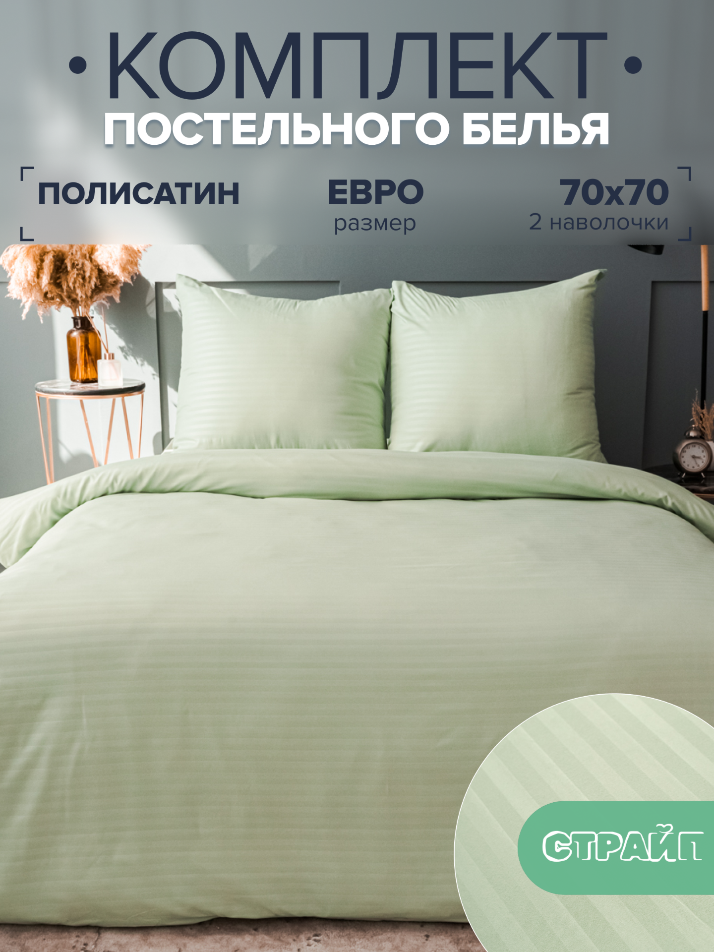 СохранитьПостельное белье евро IDEASON Полисатин Страйп (оливковый) интересное: