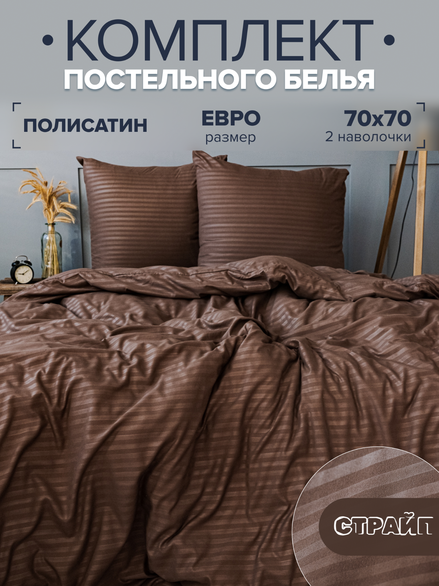 Постельное белье евро IDEASON Полисатин Страйп (кофе)