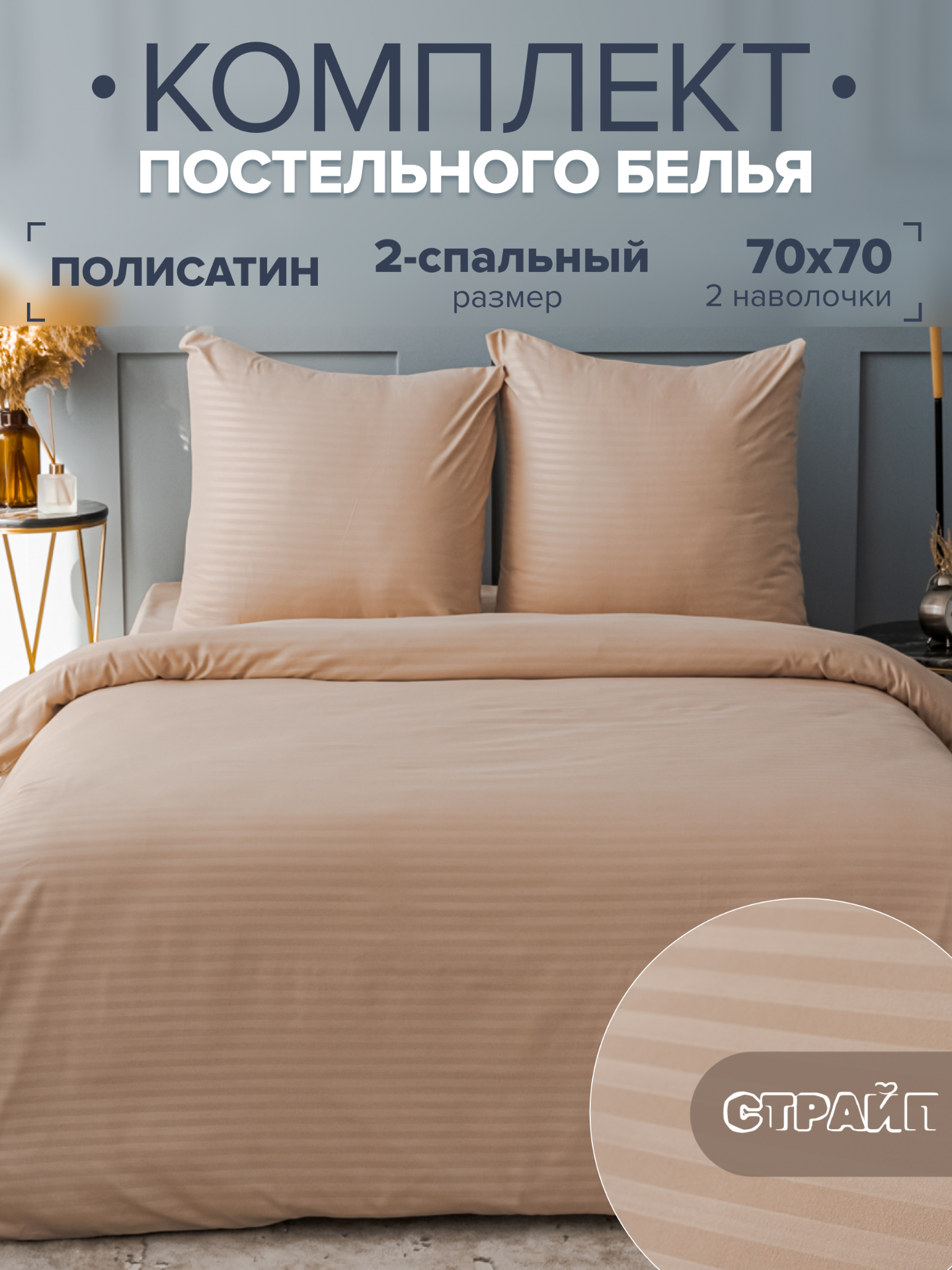 СохранитьПостельное белье 2 спальное IDEASON Полисатин Страйп (бежевый) интересное:
