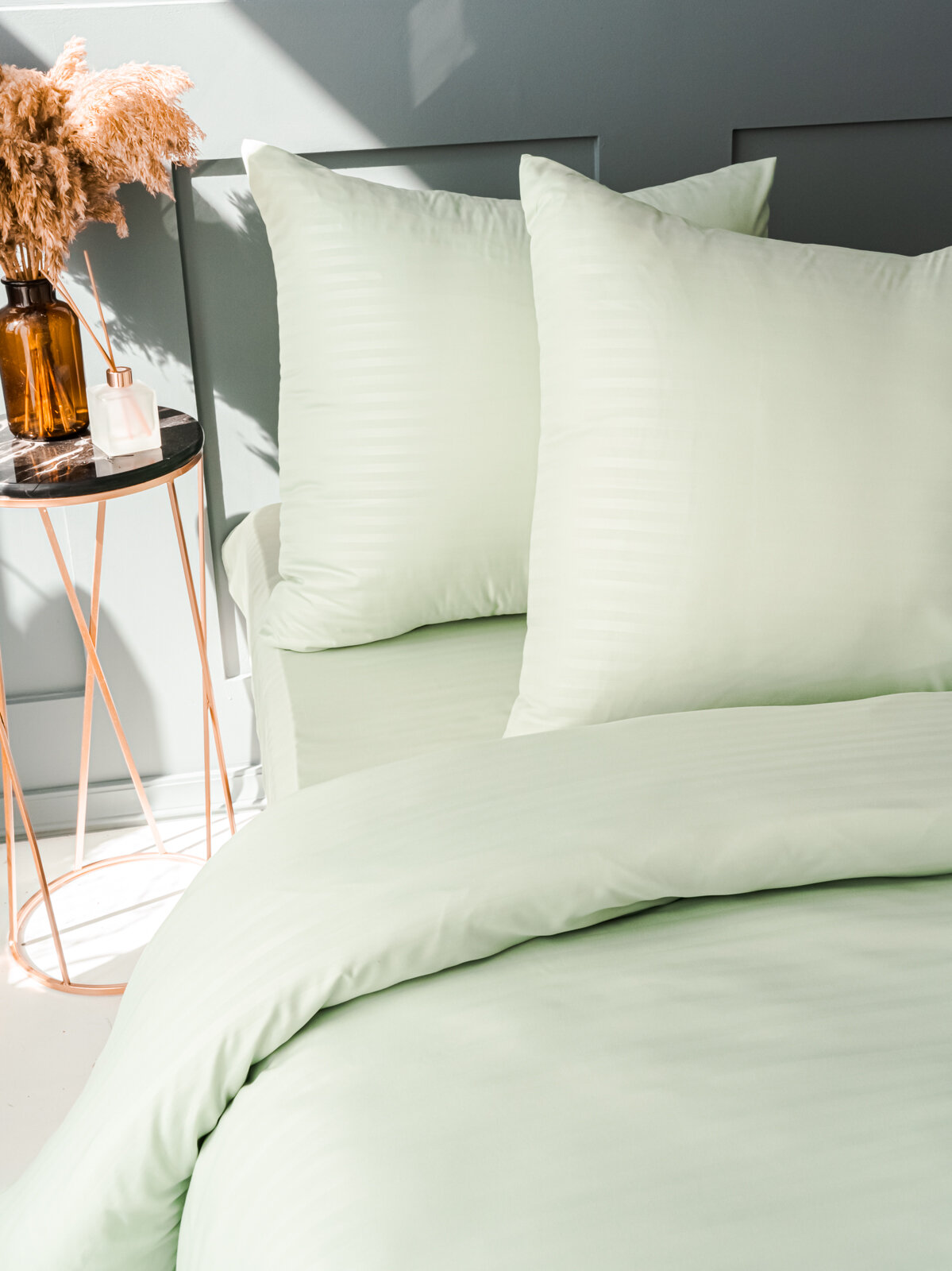 Купить Постельное белье 1.5 спальное IDEASON Полисатин Страйп (оливковый)