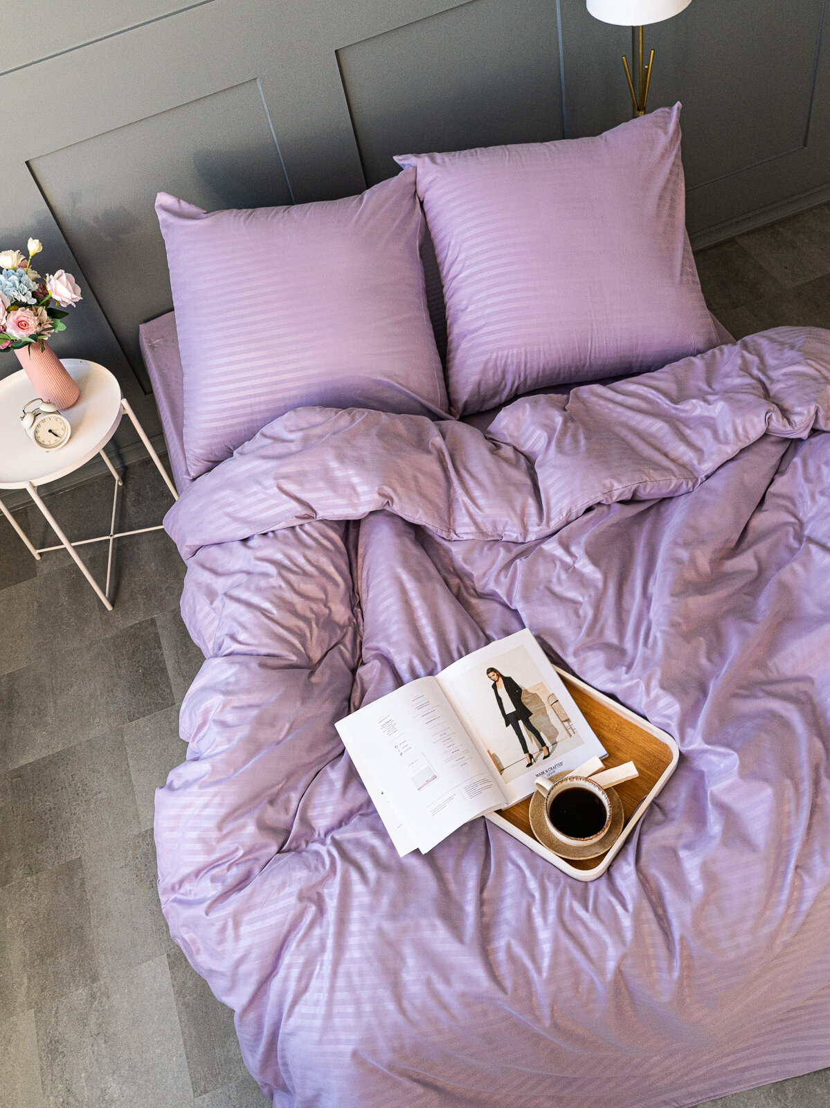 Постельное белье евро IDEASON Полисатин Страйп (фиолетовый)