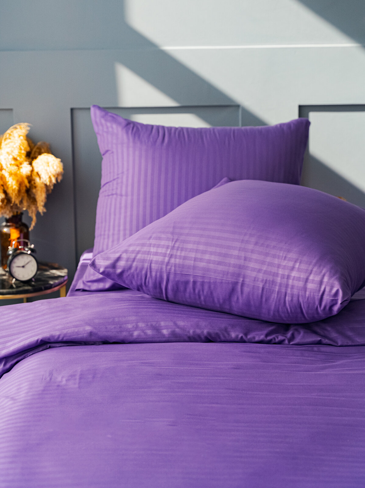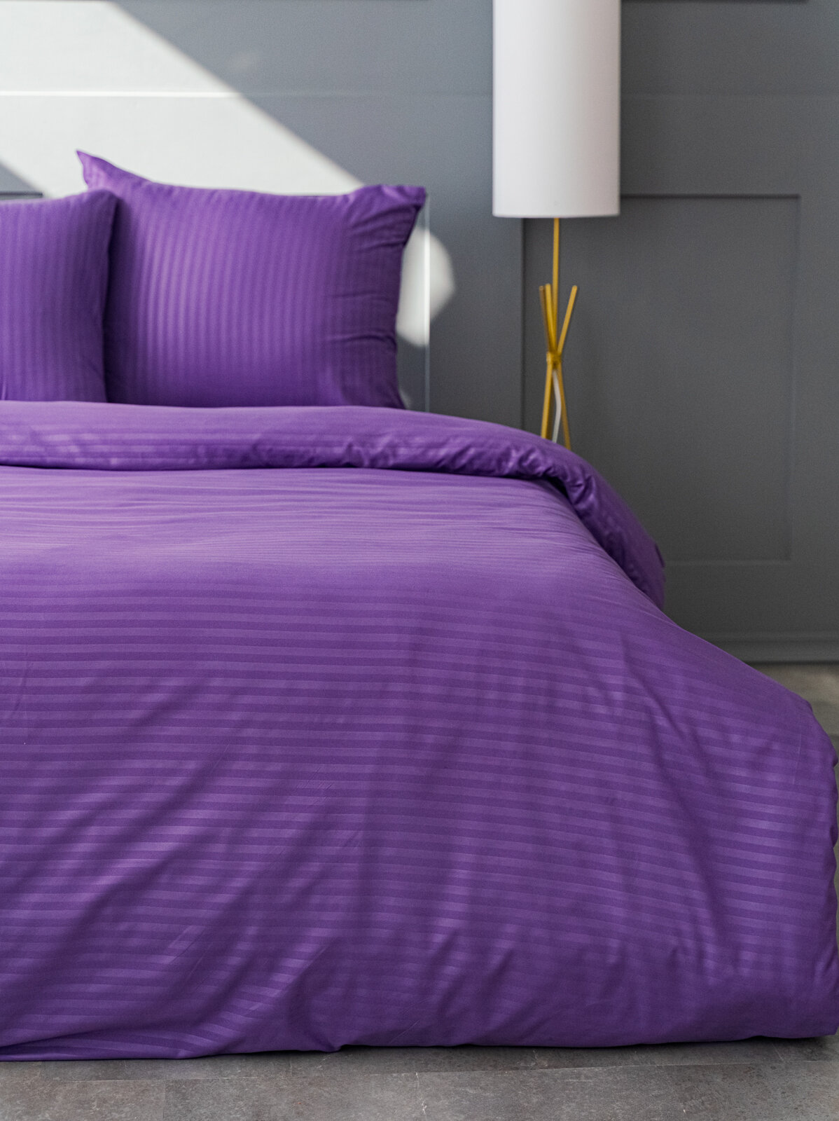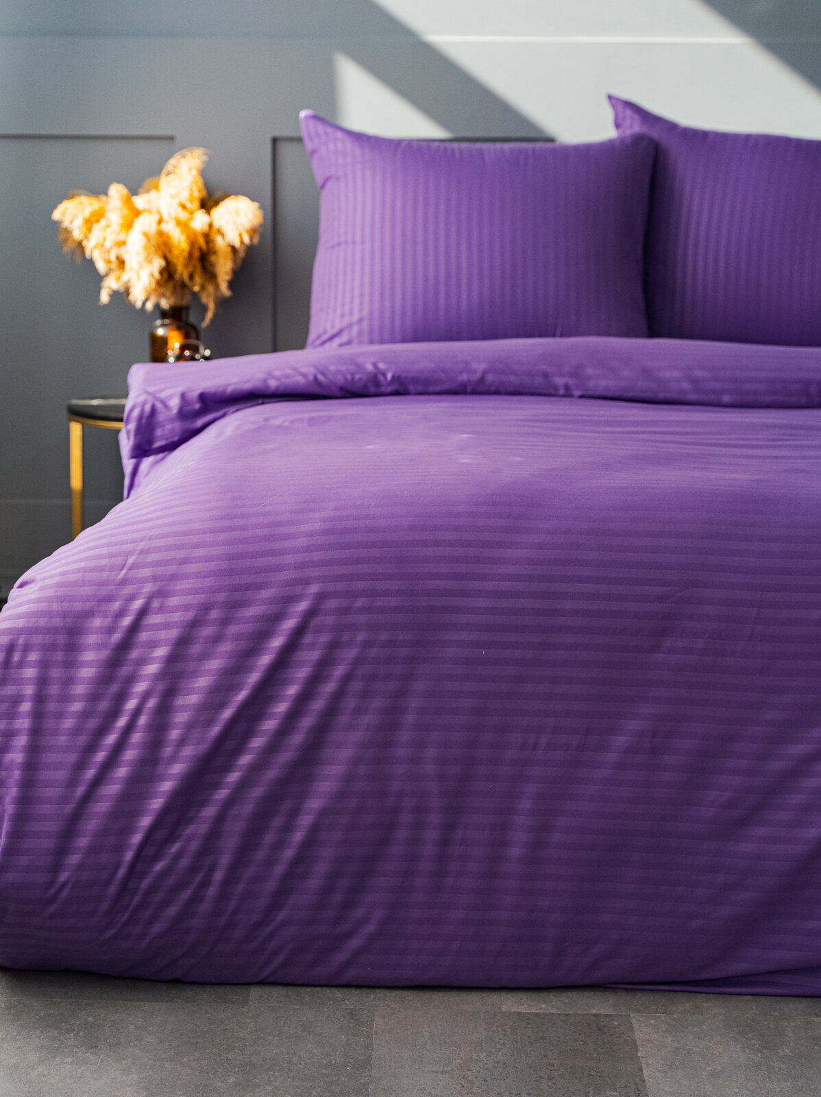 Постельное белье евро IDEASON Полисатин Страйп (фиолетовый)