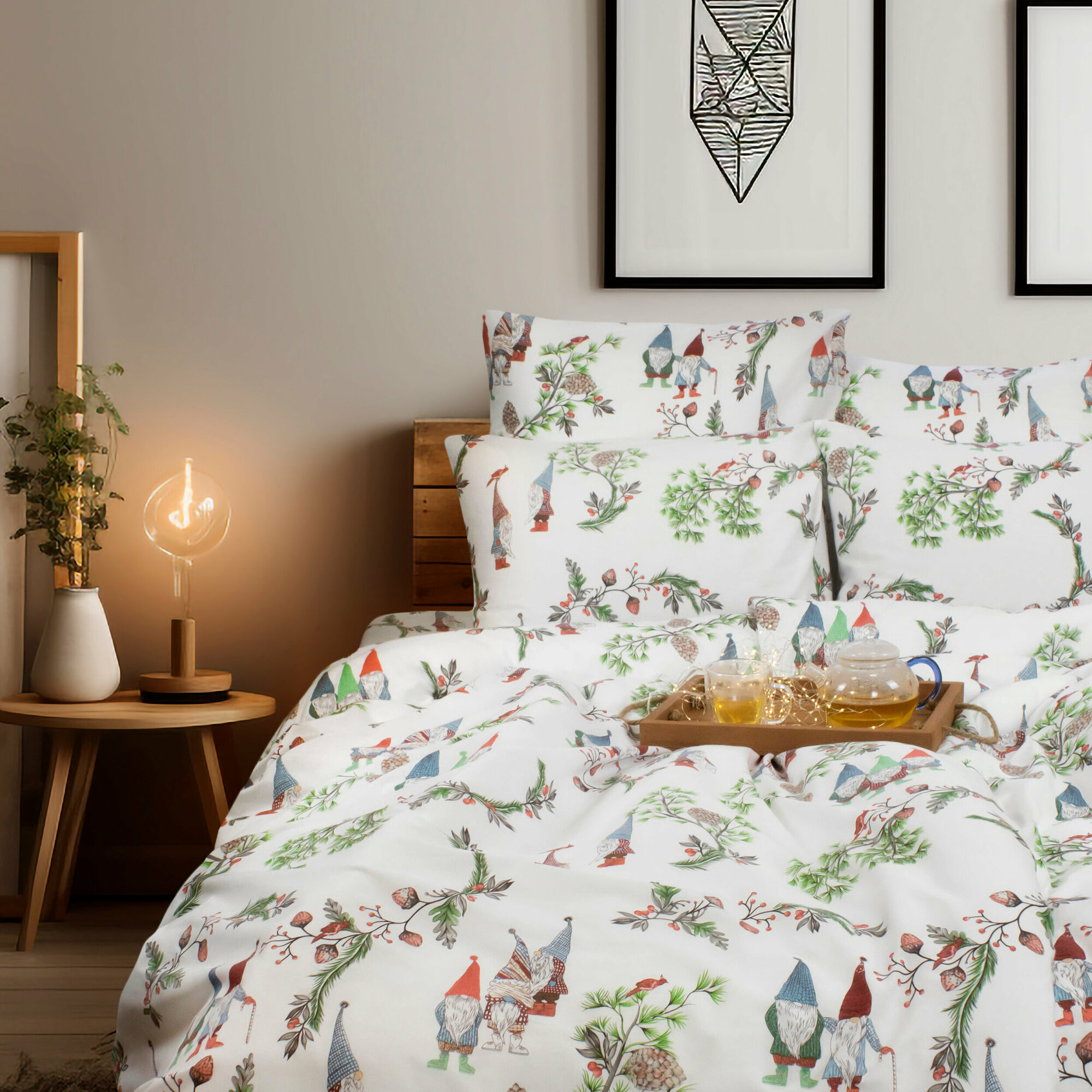 Купить Новогоднее постельное белье 1.5 спальное Cleo PURE COTTON гномики, комплект, хлопок, поплин