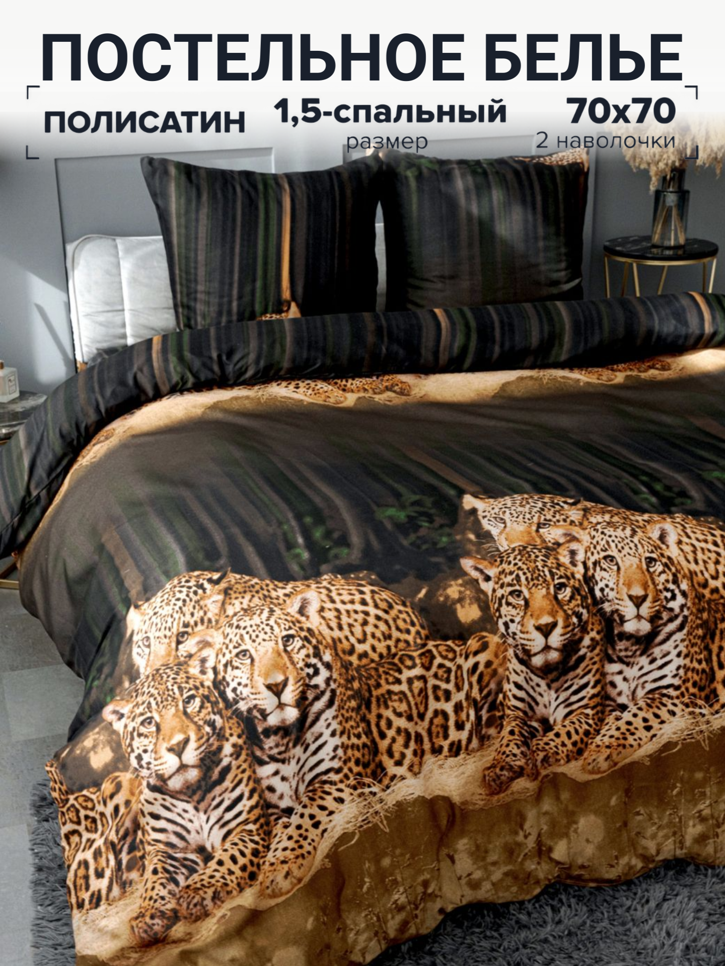 Купить Постельное белье 1.5 спальное Павлина Три гепарда, Полисатин, наволочки 70x70
