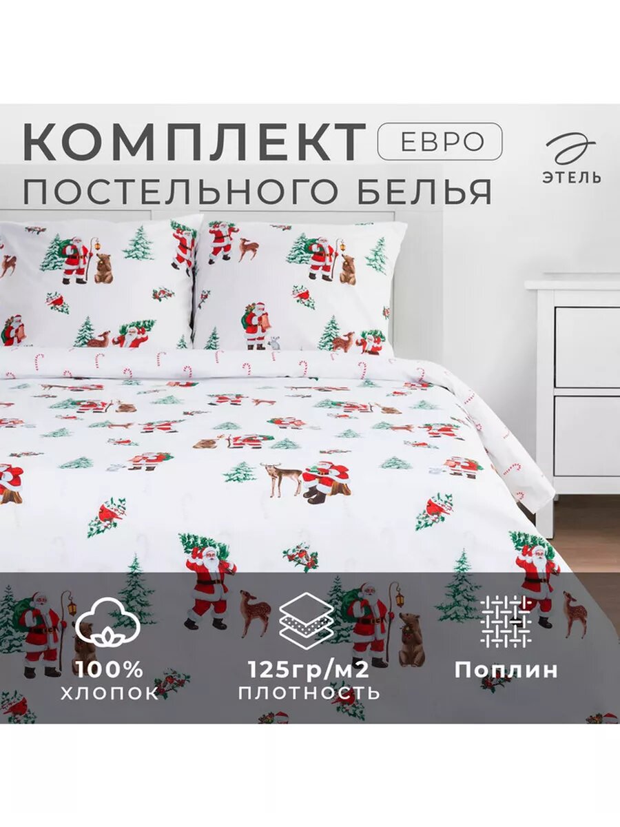 Купить Постельное белье "Этель" Евро Новогодний лес 200*217 см, 220*240 см, 70*70 см - 2 шт 5091323 .