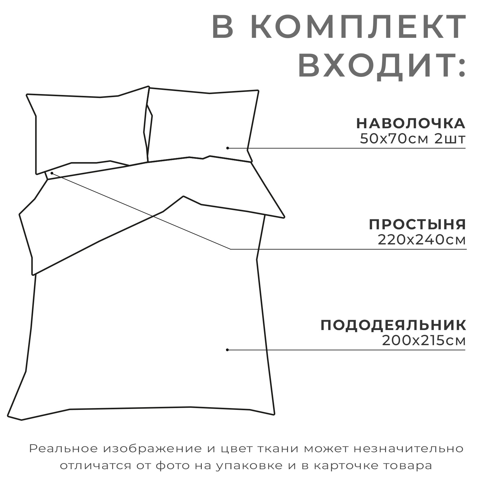 Постельное белье 2 спальное (двуспальное постельное) Этель "Cool Gray" 175*215, 200*220, 50*70+3-2 шт, бязь, 125г/м2