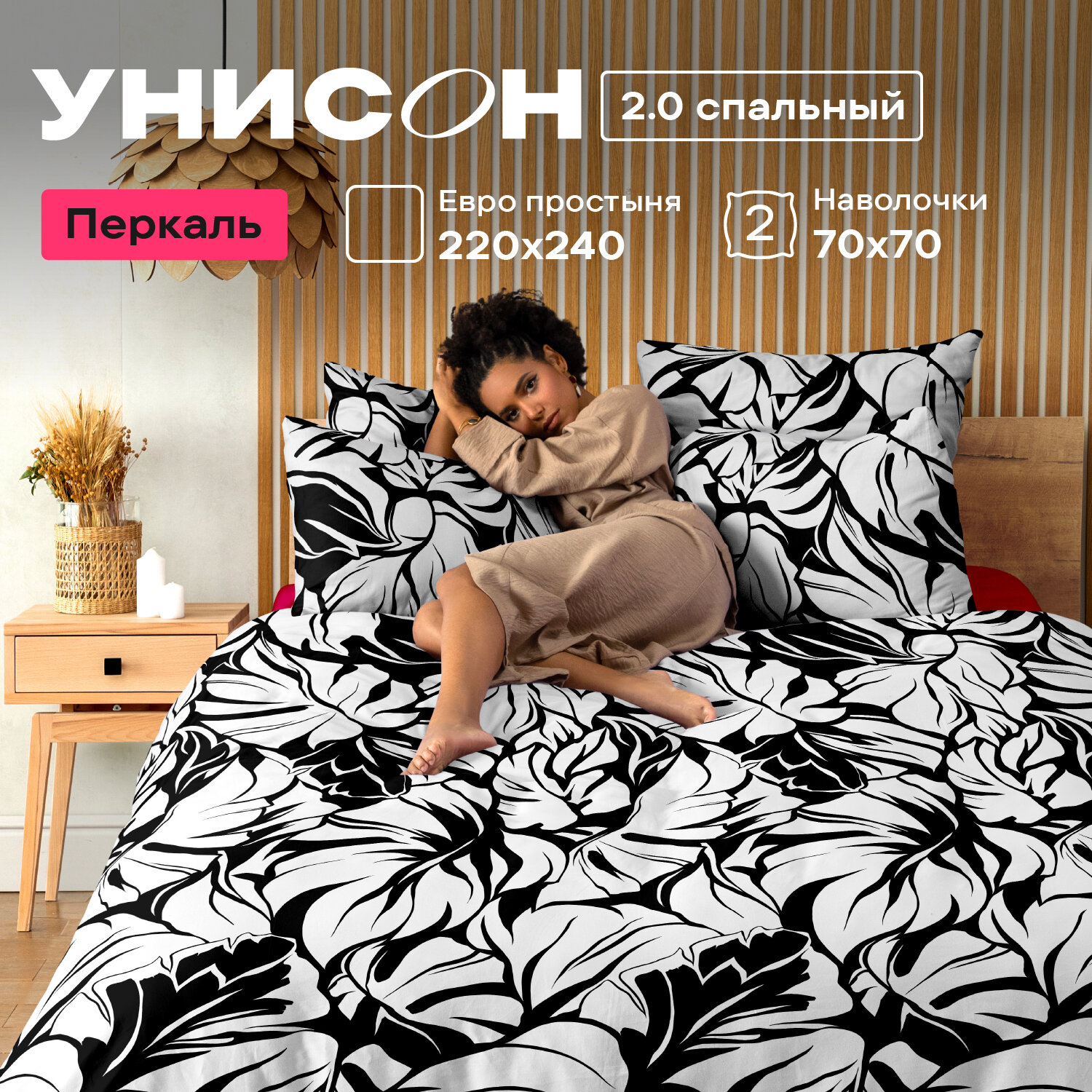 Постельное белье 2 спальное Унисон, Перкаль, нав. 70х70, Evita