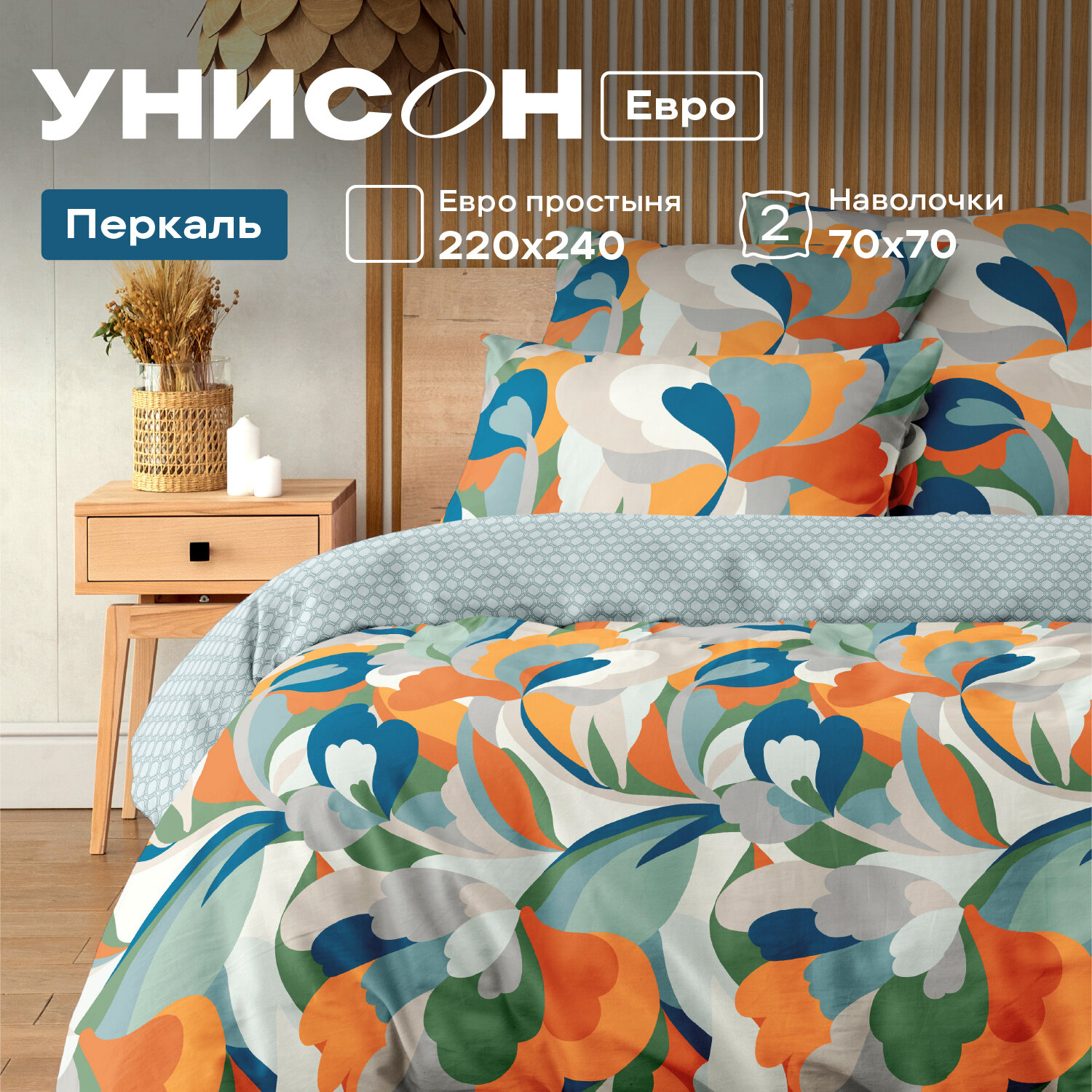 Купить Постельное белье Евро Унисон, Перкаль, нав. 70х70, Danza estiva