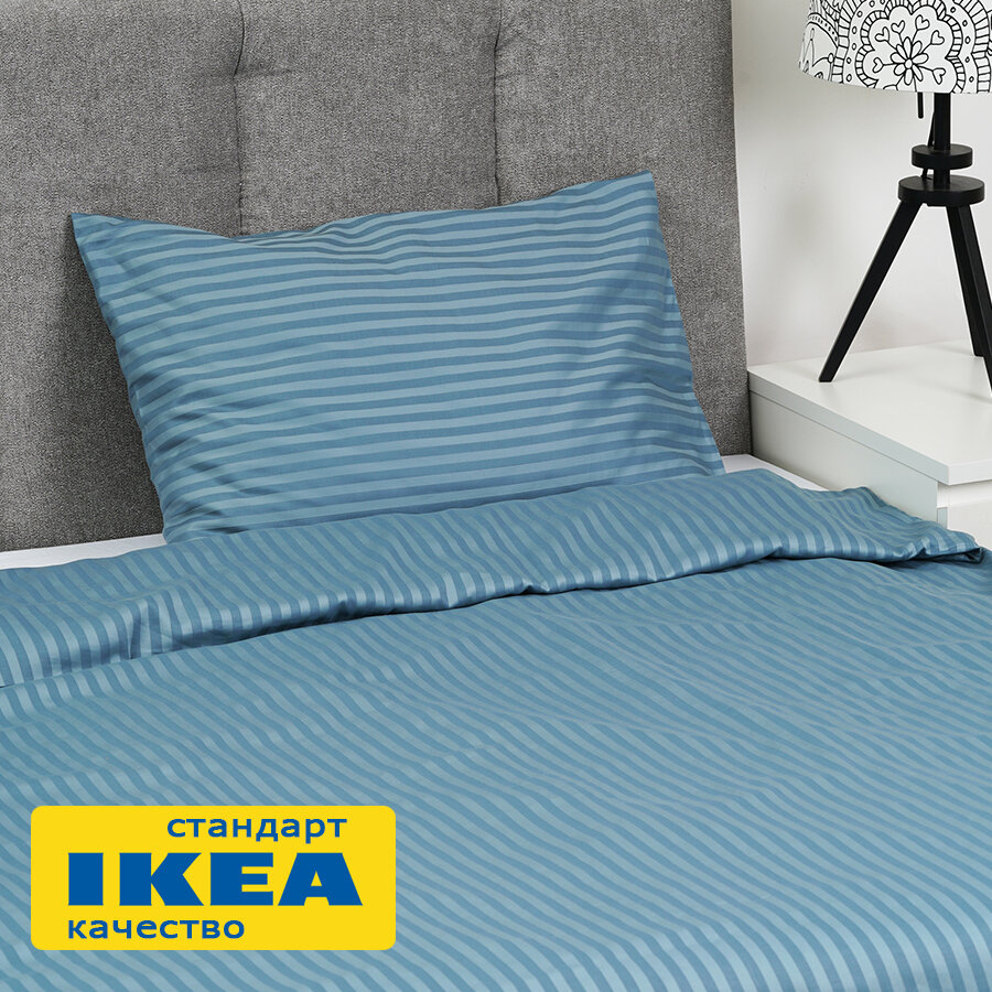 СохранитьПостельное белье 1.5 натесмио (икеа наттэсмин) 150x200/50x70 синий страйп, сатин KL-34934391 интересное: