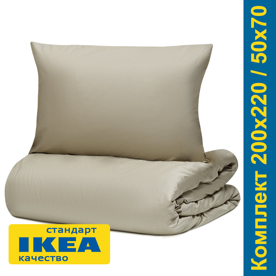 Постельное белье 1.5 лютесмио (икеа люктэсмин) 150x200/50x70 темно-бежевый сатин KL-40328086