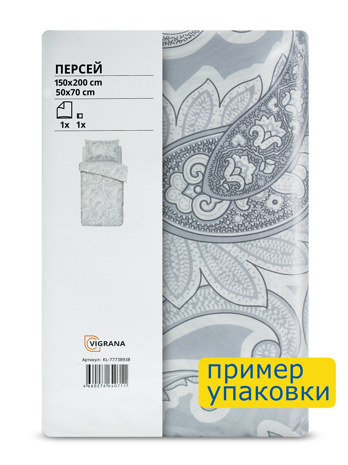 Постельное белье 1.5 персея (икеа персия) 150x200/50x70 серый, сатин, лиоцелл KL-77738948