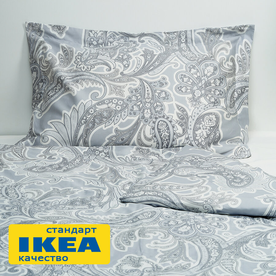 Постельное белье 1.5 платан (икеа платтмал) 150x200/50x70 цветочный орнамент/белый, сатин KL-90519762