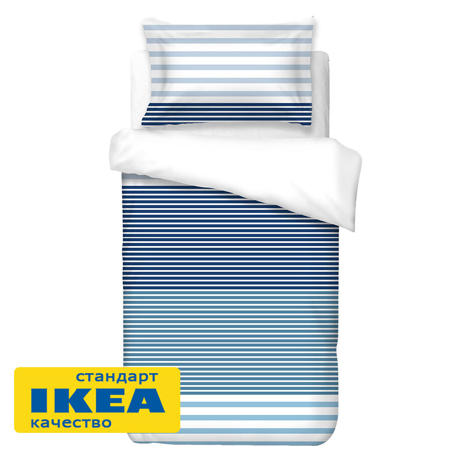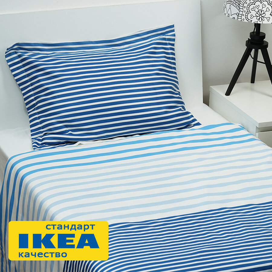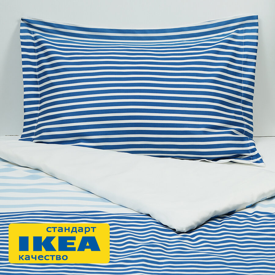 Постельное белье 1.5 натесмио (икеа наттэсмин) 150x200/50x70 синий страйп, сатин KL-34934391