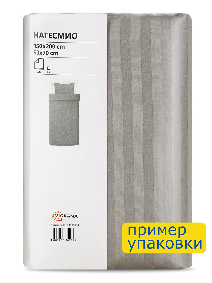 Купить Постельное белье 1.5 натесмио (икеа наттэсмин) 150x200/50x70 серый страйп, сатин KL-34373497