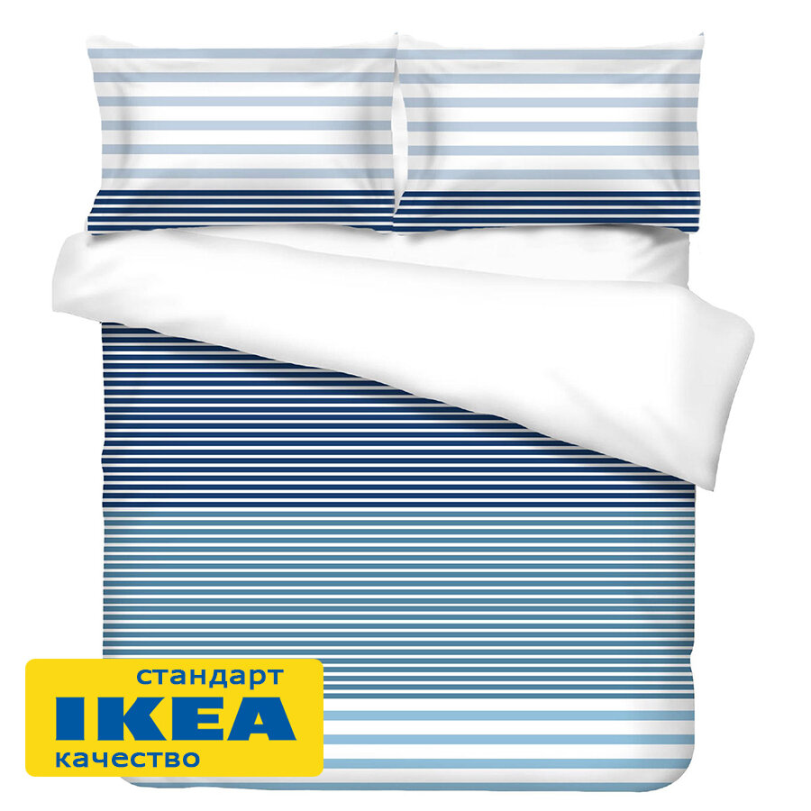 Постельное белье 2 спальное натесмио (икеа наттэсмин) 200x200/50x70 синий страйп, сатин KL-26560330