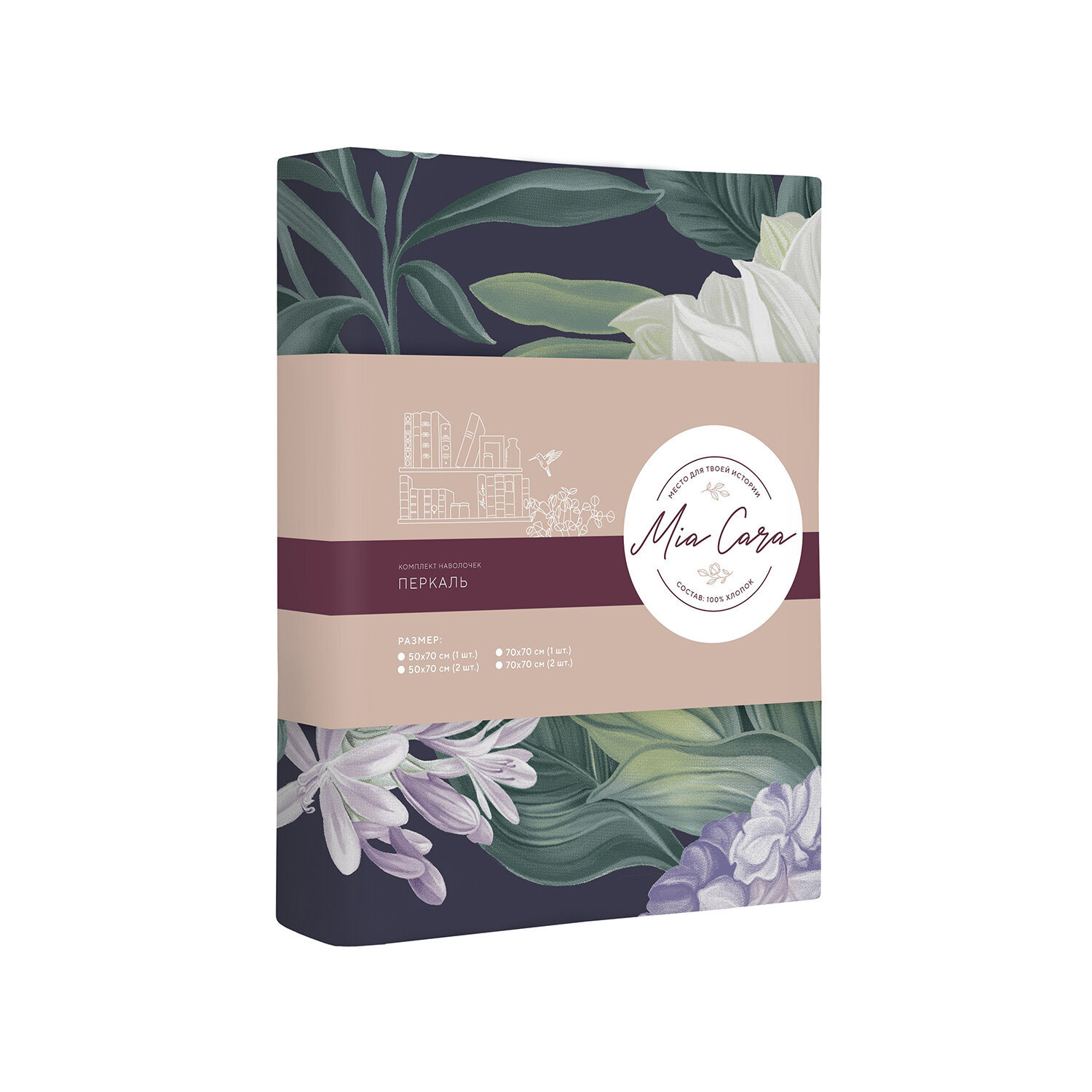 Наволочки 50х70 Mia Cara, Перкаль, Хлопок, 2 шт / Комплект наволочек Таинственный сад 24284-3