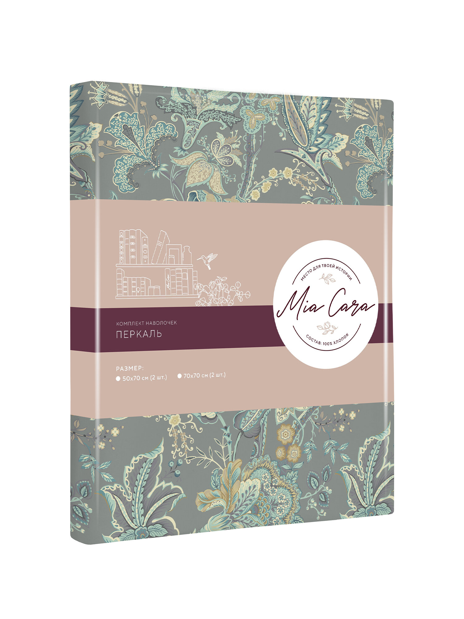 Наволочки 70х70 Mia Cara, Перкаль, Хлопок, 2 шт / Комплект наволочек Таинственный сад 24284-3