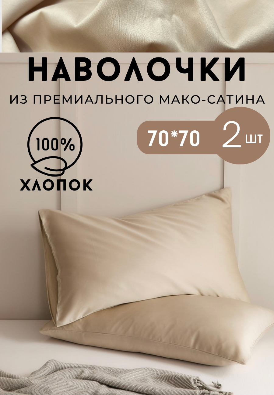 Наволочки для сна Sleep Bed из макосатина, 50x70, бежевые, 2 штуки
