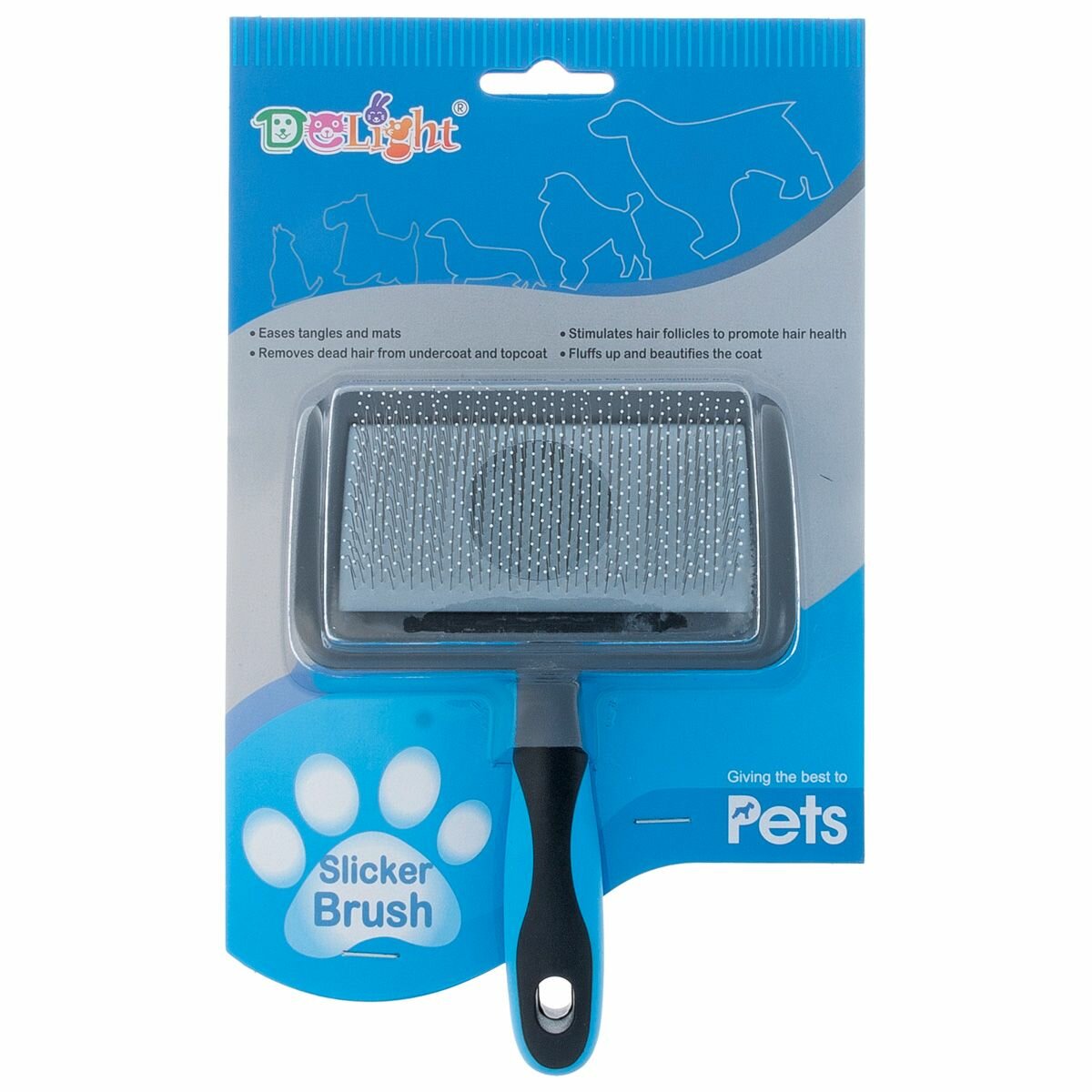 Пуходерка щетка для кошек и собак DeLIGHT 368210S пластиковая, с мягким кордом, малая