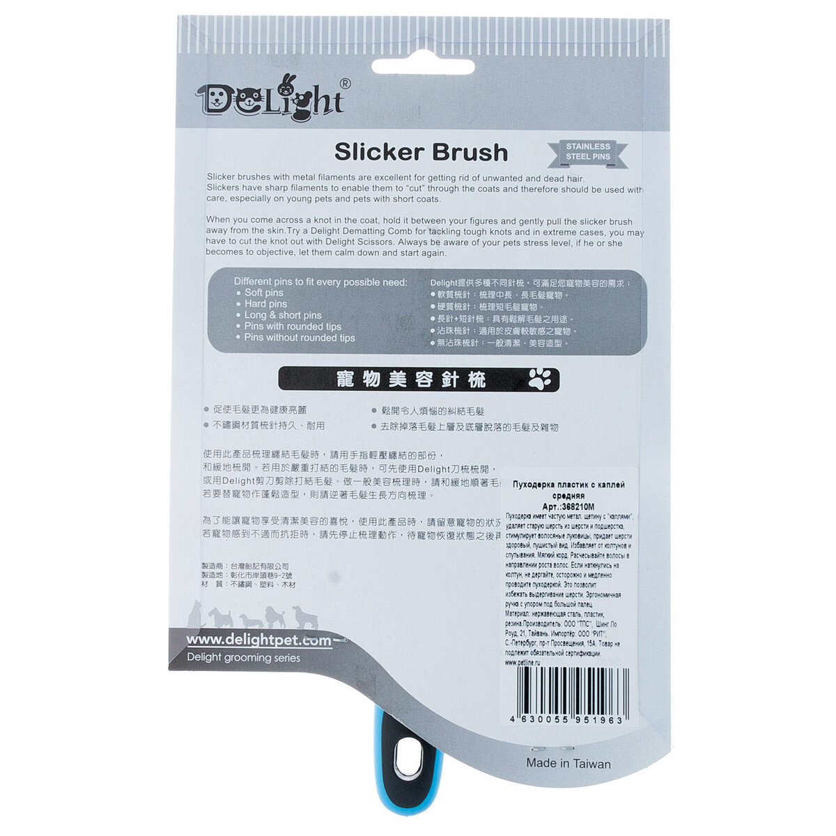 Пуходерка Delight пластик с каплей средняя, для кошек и собак