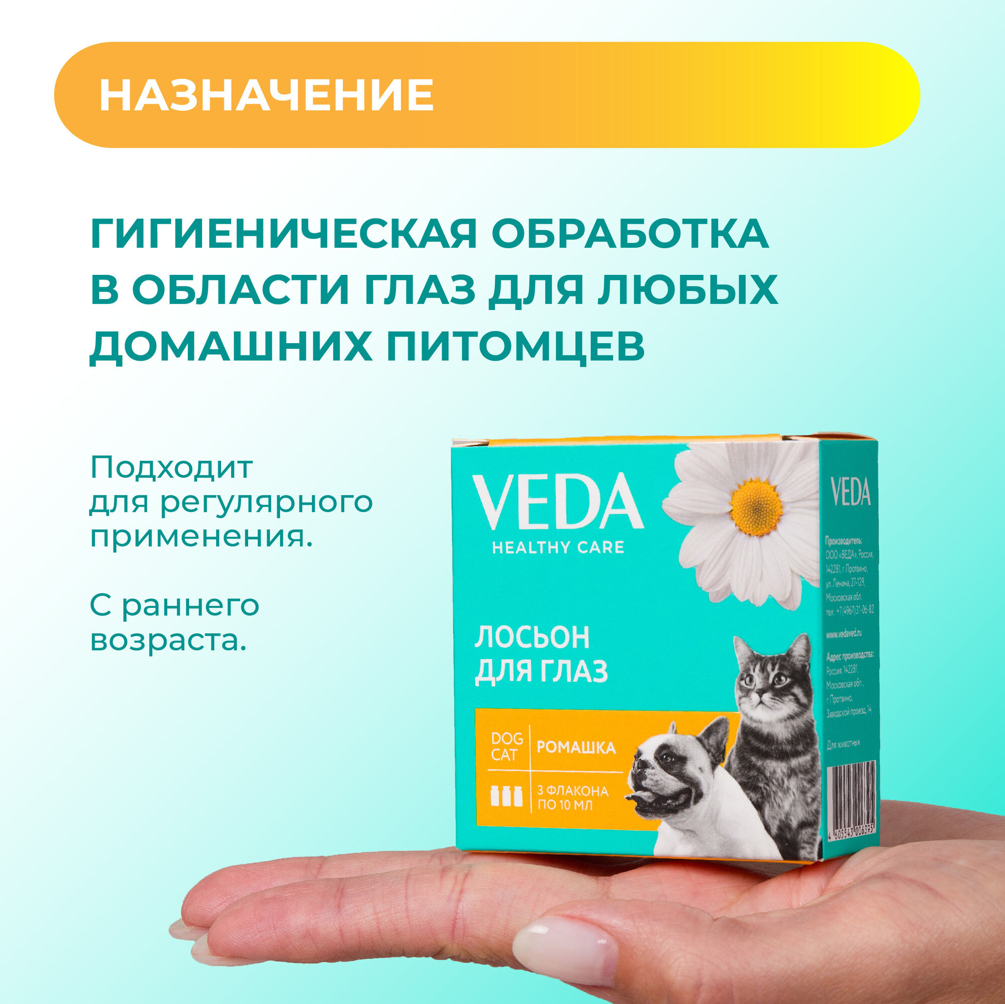 Лосьон для глаз «ромашка» зоогигиеническое средство, 3 фл. по 10 мл, VEDA интересное: