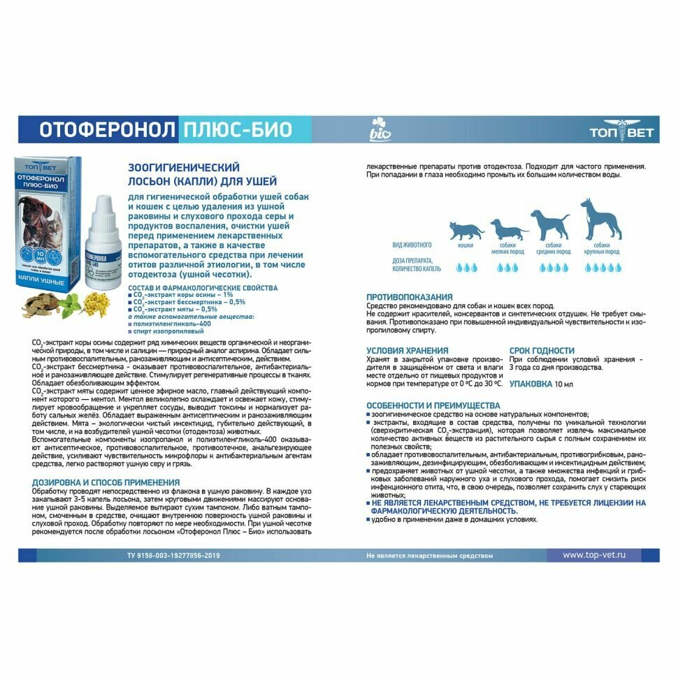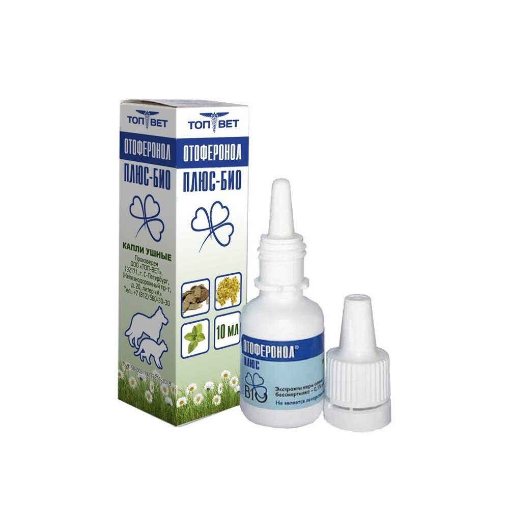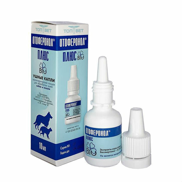 Ушные капли для кошек и собак ТОП-ВЕТ "Отоферонол Плюс Био", зоогигиеническое средство, 10мл интересное: