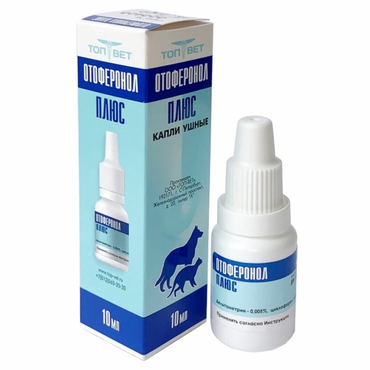 | Подробная комплектация | Заводская упаковка, инструкция, ушные капли 10мл, транспортировочная упаковка |