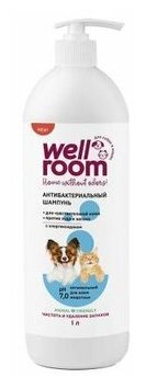 Гипоаллергенный антибактериальный шампунь для кошек и собак с хлоргексидином Wellroom 1 литр