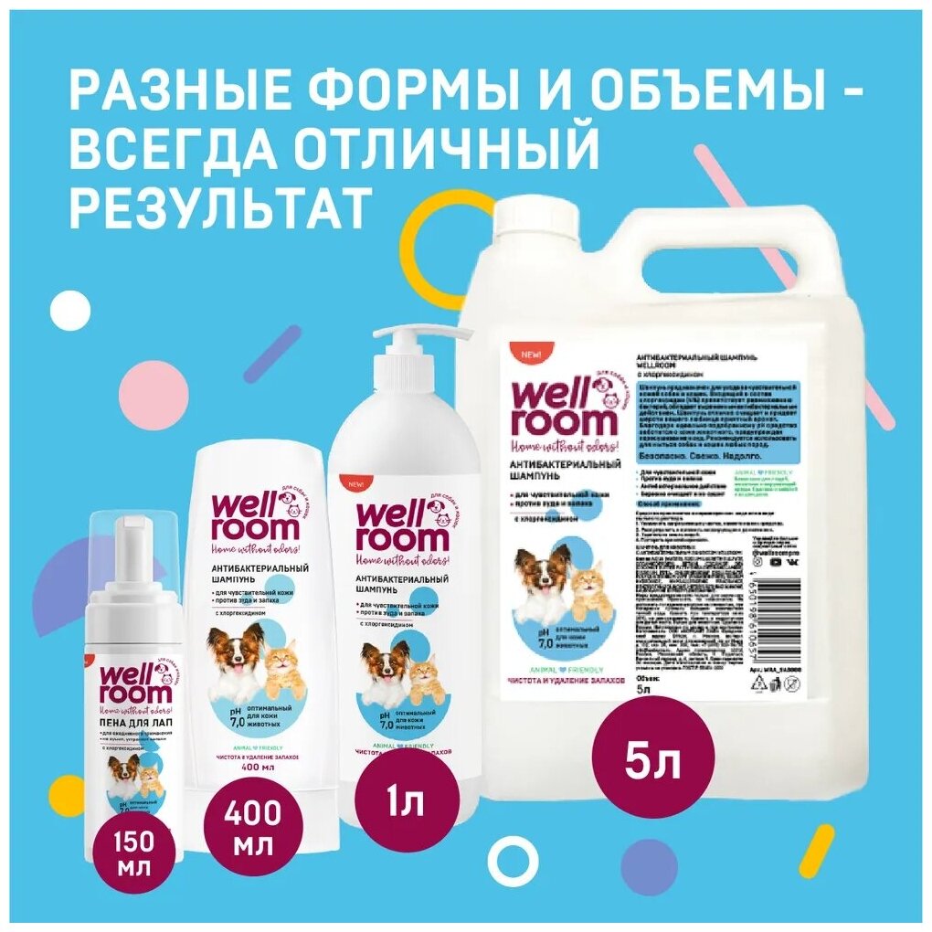 Шампунь для животных с антибактериальным эффектом Wellroom, 5 л