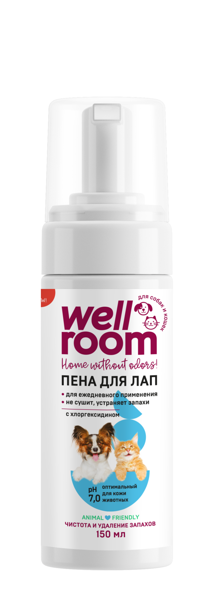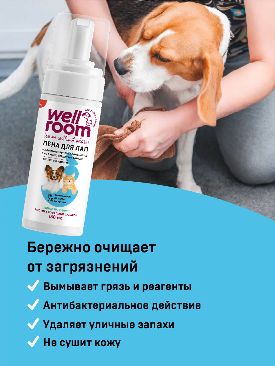 Купить Пенка для мытья лап - шампунь для кошек и собак с хлоргексидином Wellroom