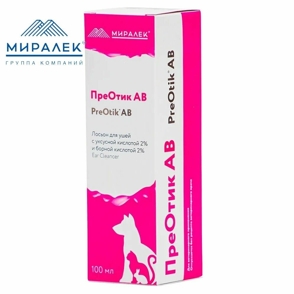 Миралек: Лосьон для ушей, Преотик АВ, уксусная + борная кислота, 100 мл
