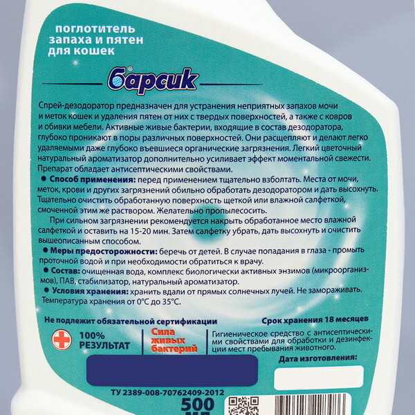 Поглотитель запаха и пятен Барсик для кошек, 500 мл интересное: