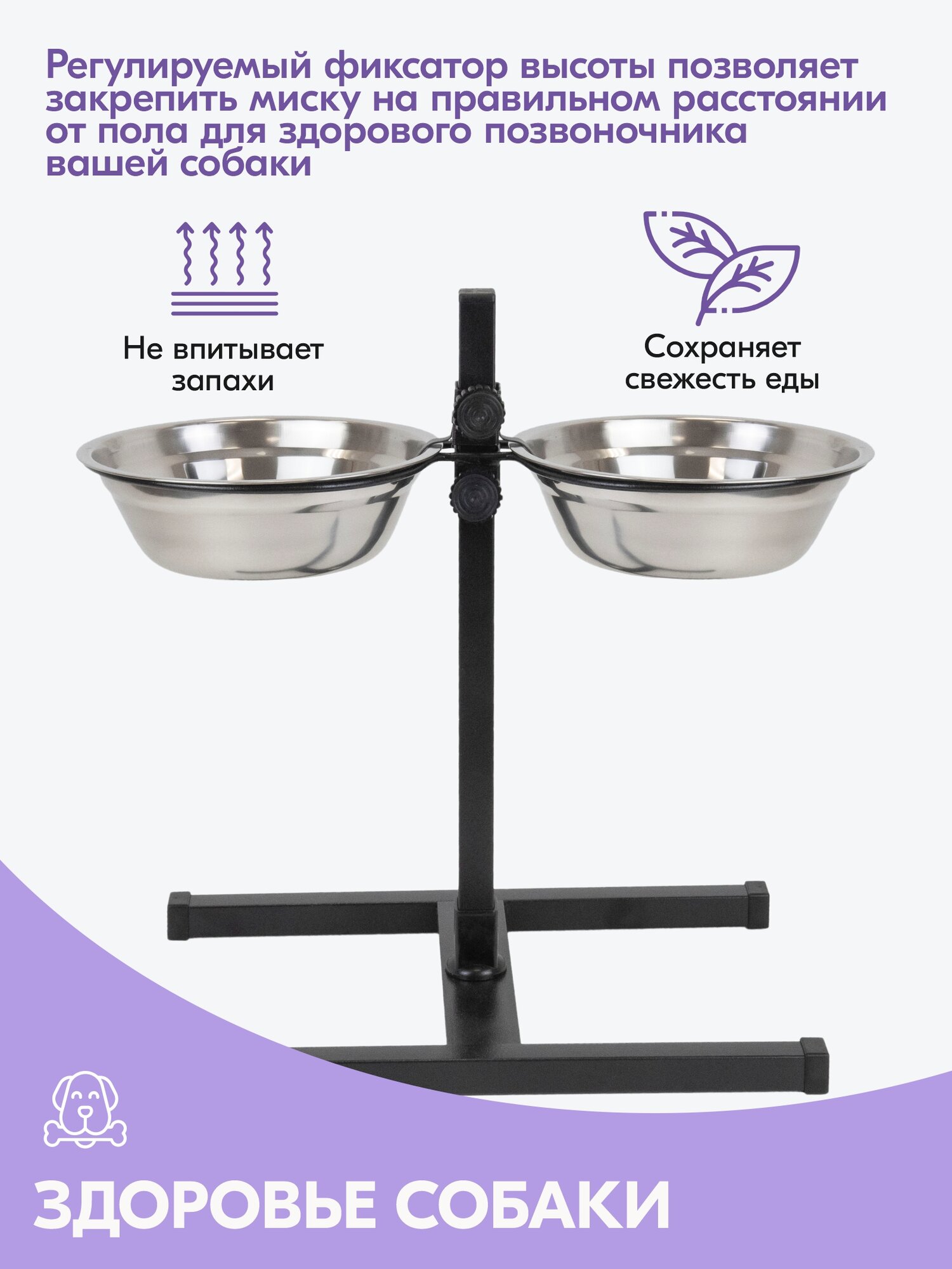 Купить Миска на подставке, стойка металлическая, регулируемая, двойная "PetTails", черная, h50см, 2*1,5л, D22см