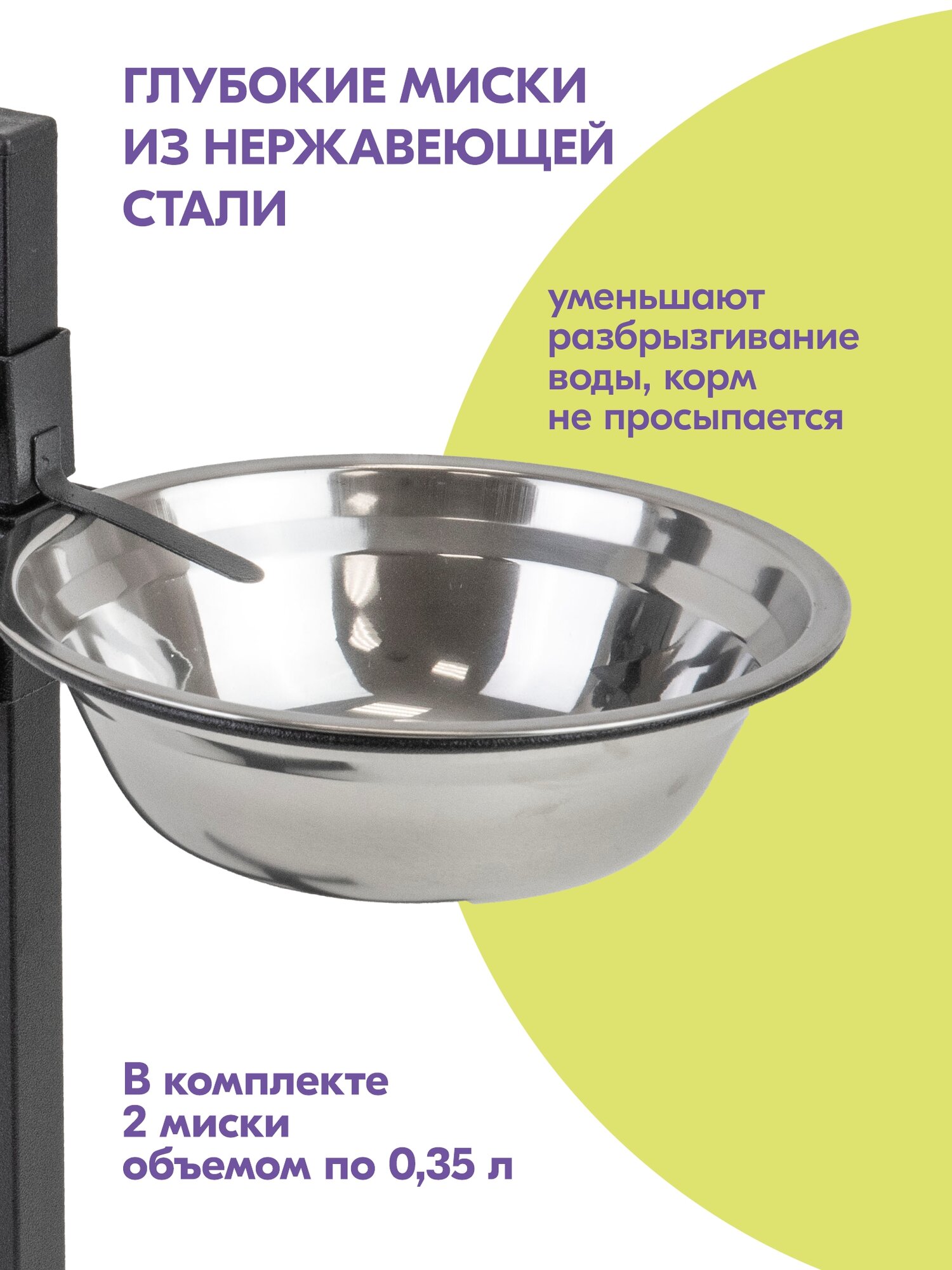 | Подробная комплектация | основание стойки, фиксатор, держатель, миски |