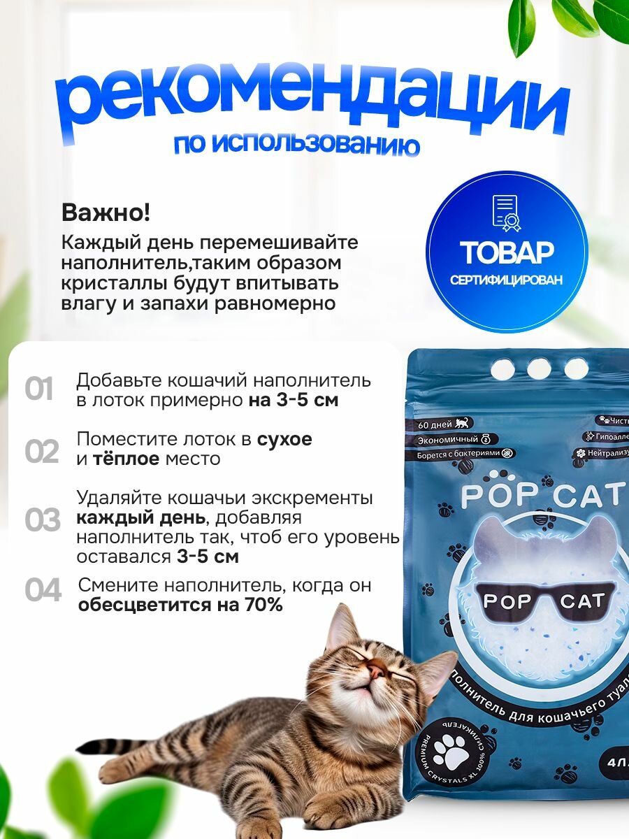 Силикагелевый наполнитель для кошачьего туалета PopCat 4л, 1,6кг