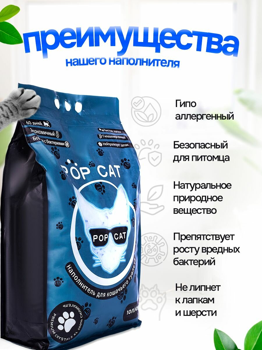 Силикагелевый наполнитель для кошачьего туалета PopCat 10л, 4 кг
