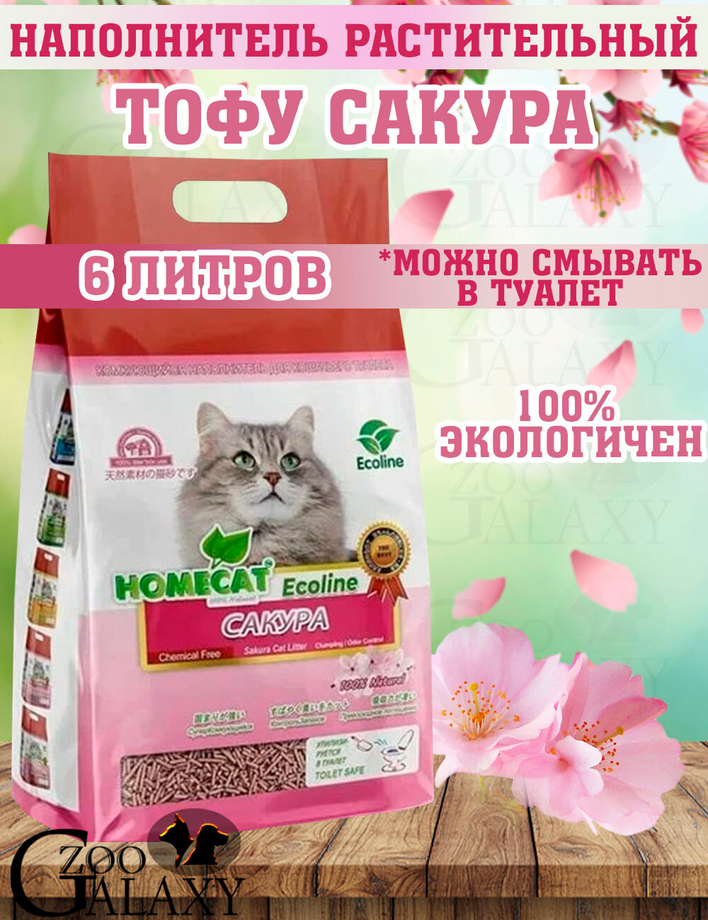 Купить Наполнитель для кошачьих туалетов тофу HOMECAT Ecoline комкующийся с ароматом сакуры 6 л