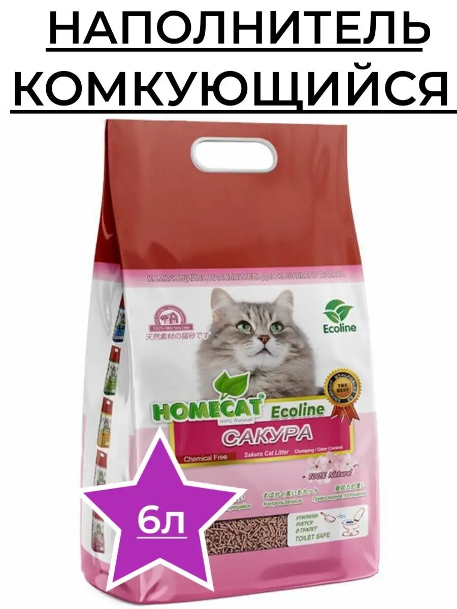 HOMECAT Ecoline Сакура комкующийся наполнитель для кошачьих туалетов с ароматом сакуры 6х6л