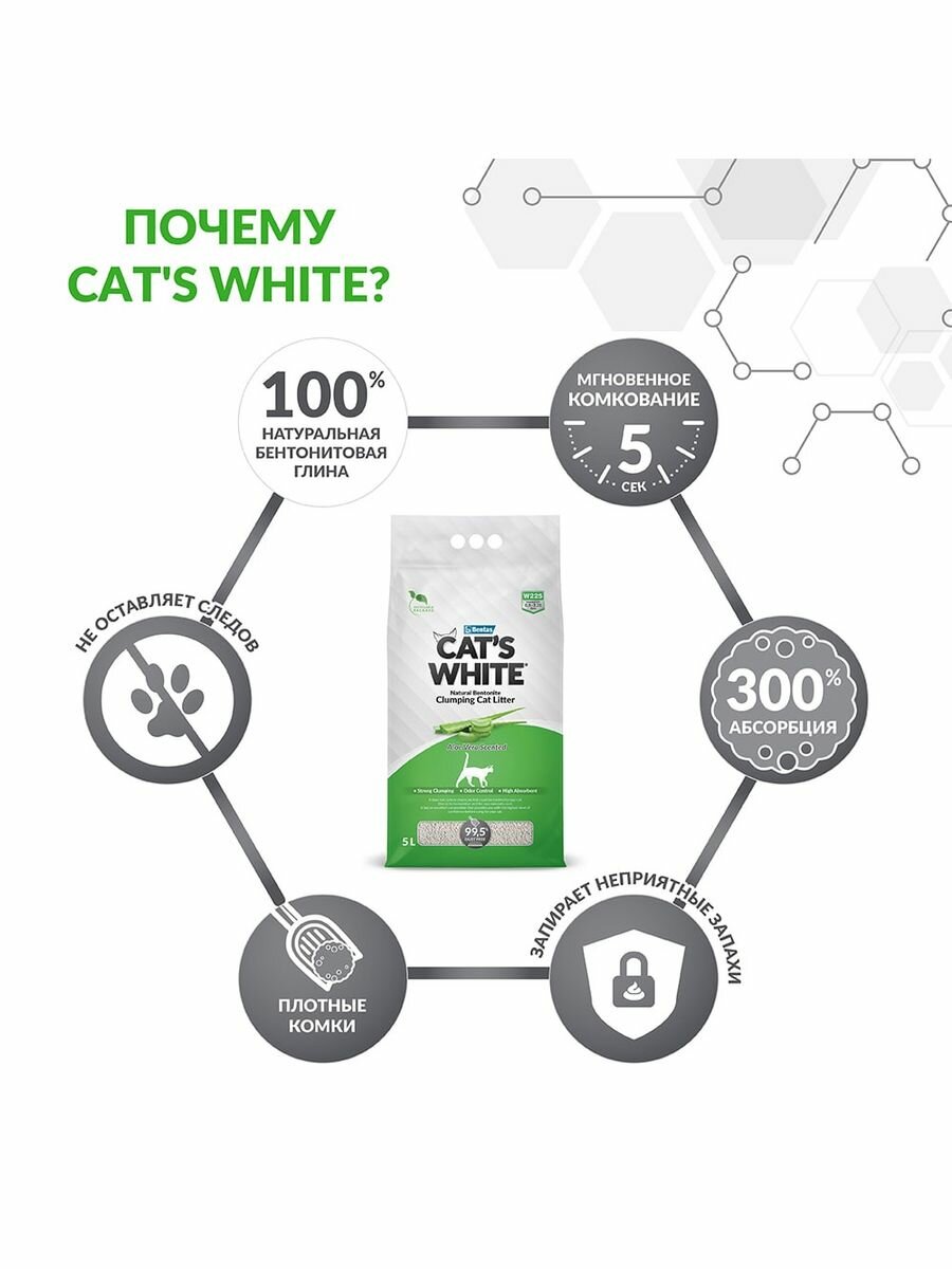 Cats White Наполнитель комкующийся с ароматом алоэ вера для кошачьего туалета 5л (Aloe Vera) 011861129 4,250 кг 61213 (1 шт)