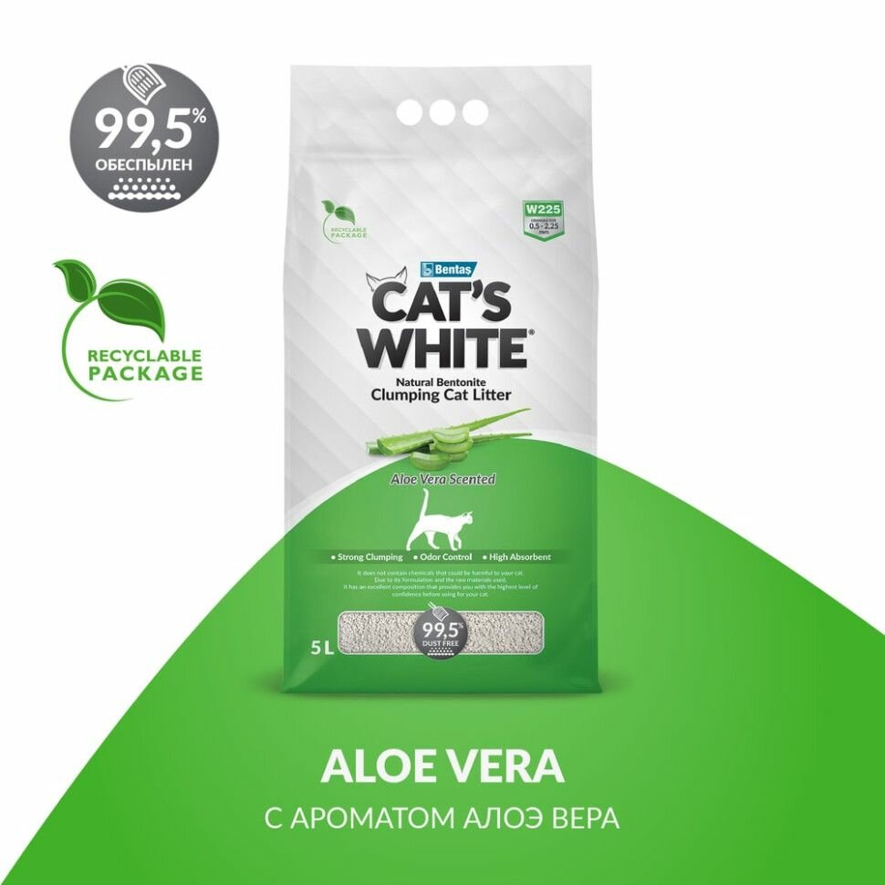 Купить Cat's White Aloe Vera комкующийся наполнитель с ароматом алоэ вера для кошачьего туалета (5л)