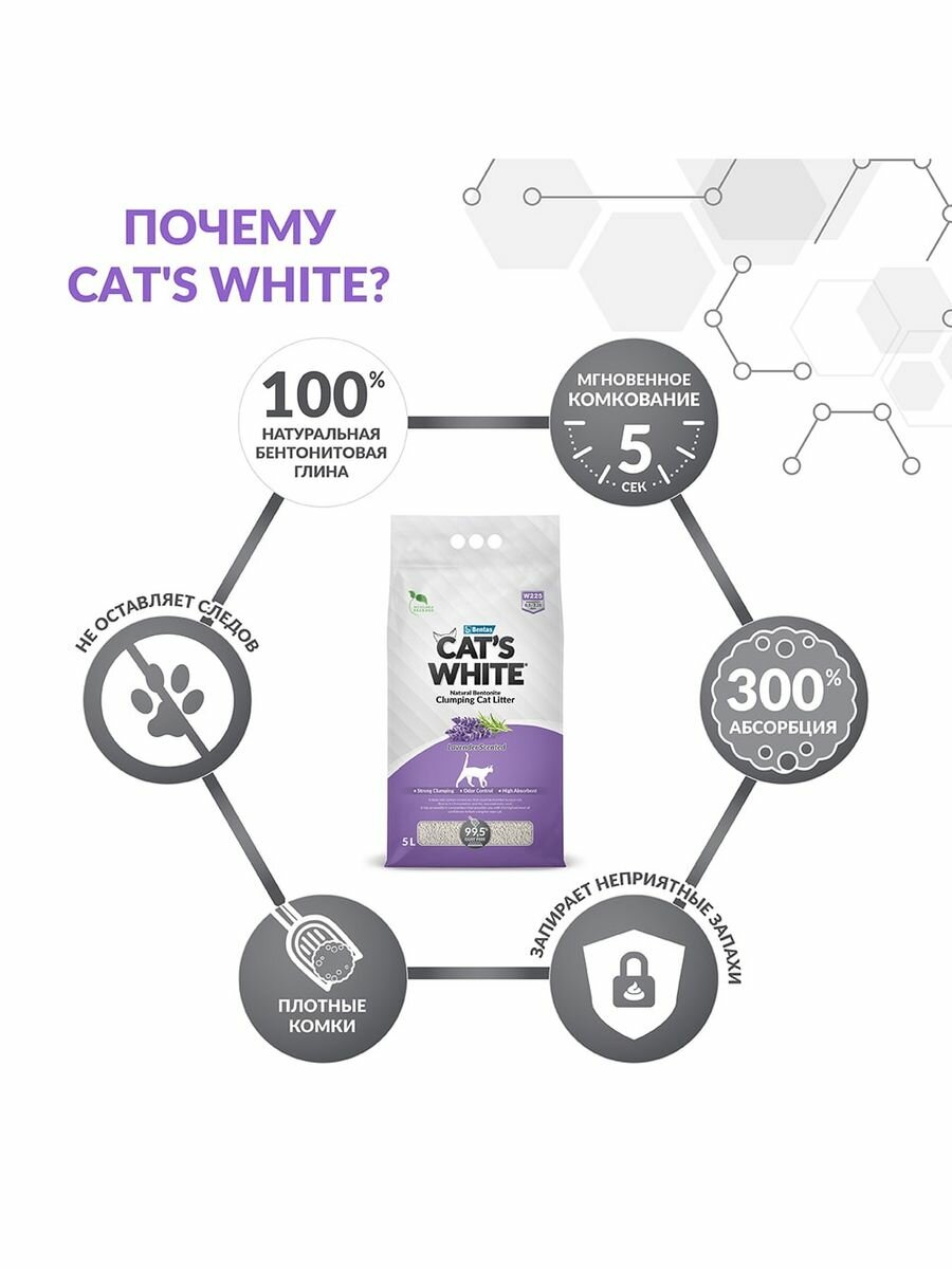 Наполнитель для кошачьих туалетов Cat's White Lavender комкующийся, бентонитовый с нежным ароматом лаванды (5л)