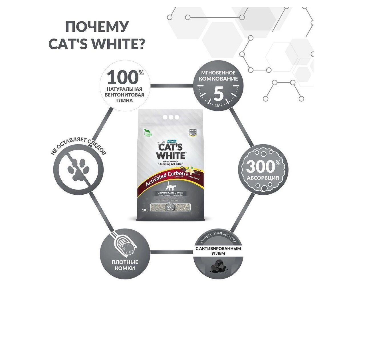 Купить Cat's White Activated Carbon Vanilla комкующийся наполнитель с активированным углем и ароматом ванили для кошачьего туалета (10л)
