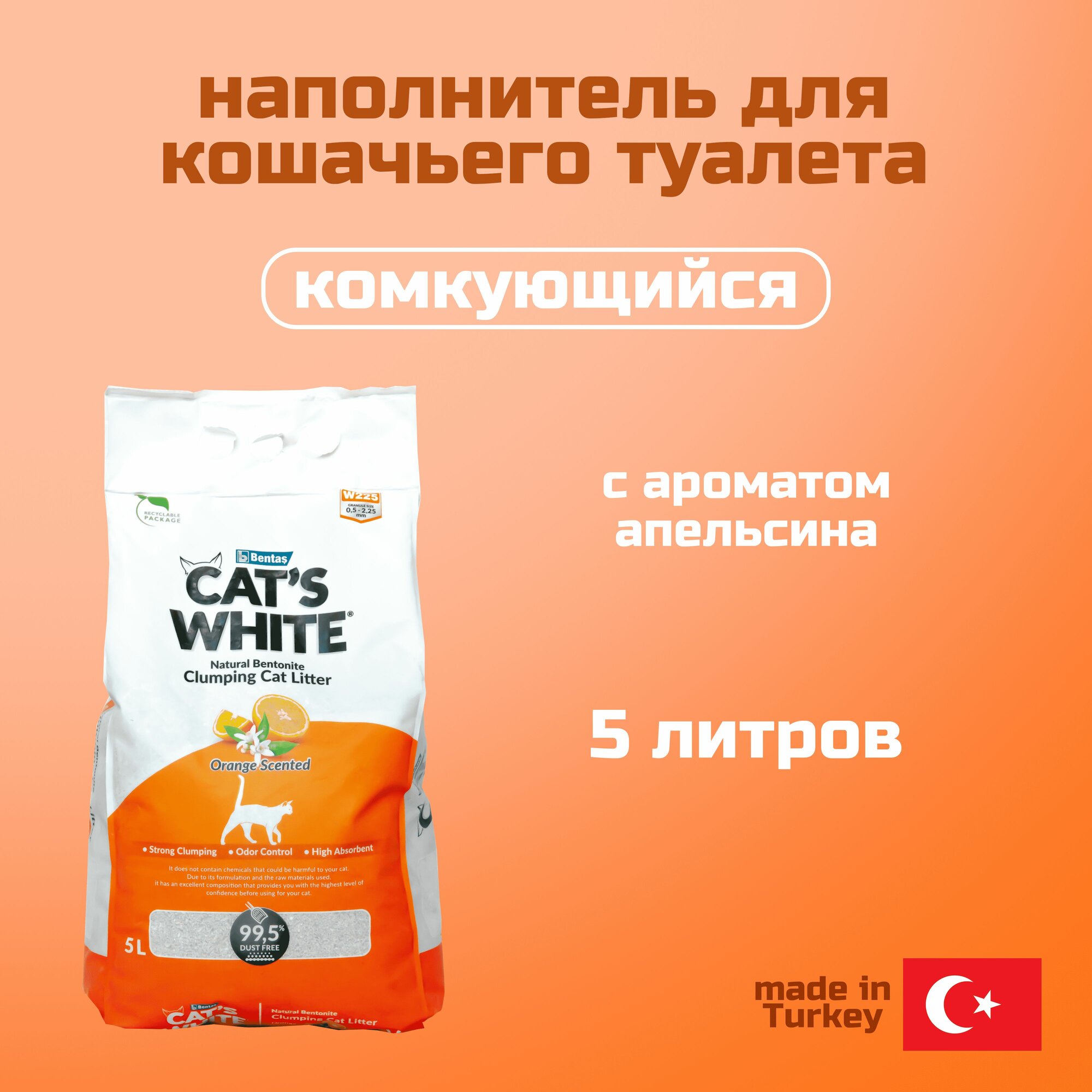 Купить Наполнитель для кошачьего туалета Cat's White Orange с ароматом апельсина - 5 л