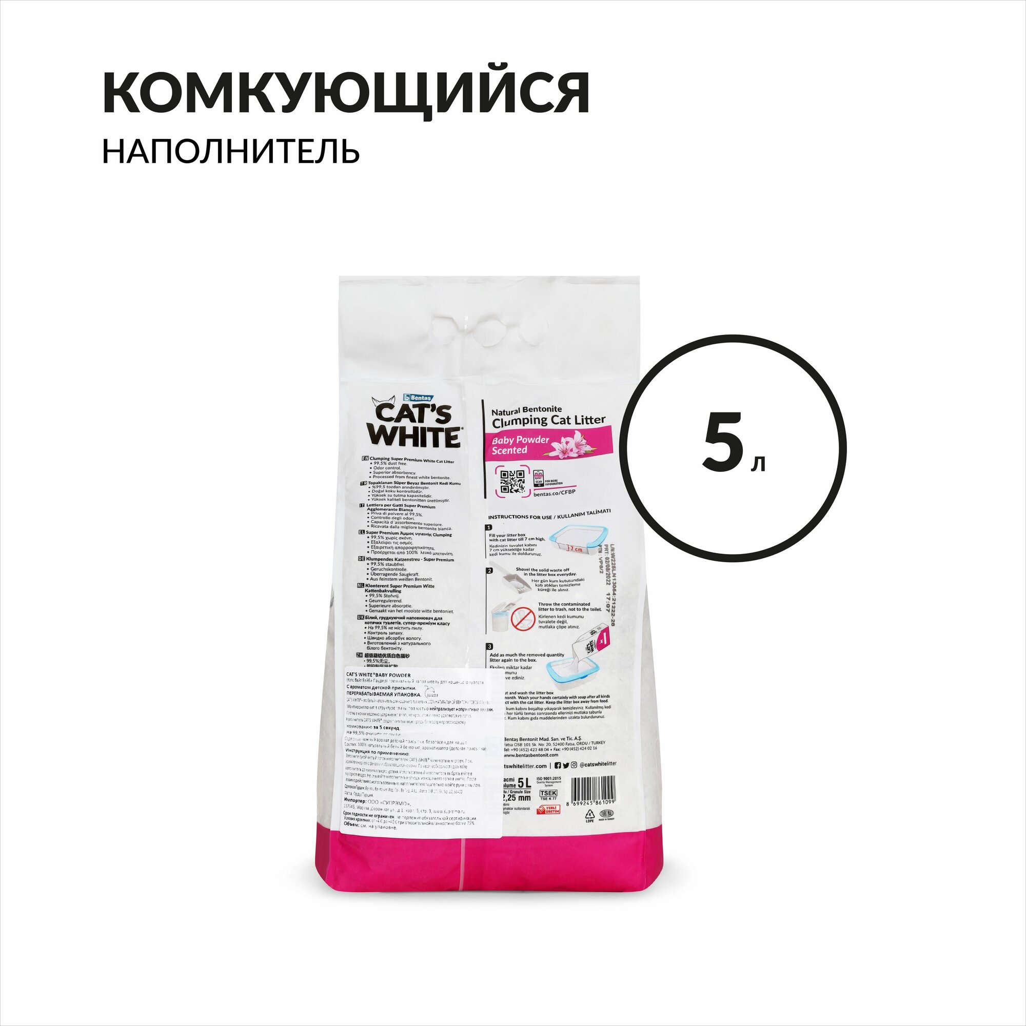 Комкующийся наполнитель Cat's White с ароматом детской присыпки для кошачьего туалета 5 л 1 шт