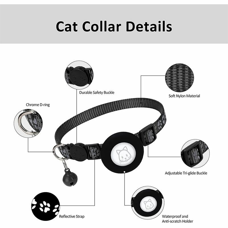 Купить Ошейник для животных с колокольчиком и чехлом для GPS трекера Apple AirTag - черный