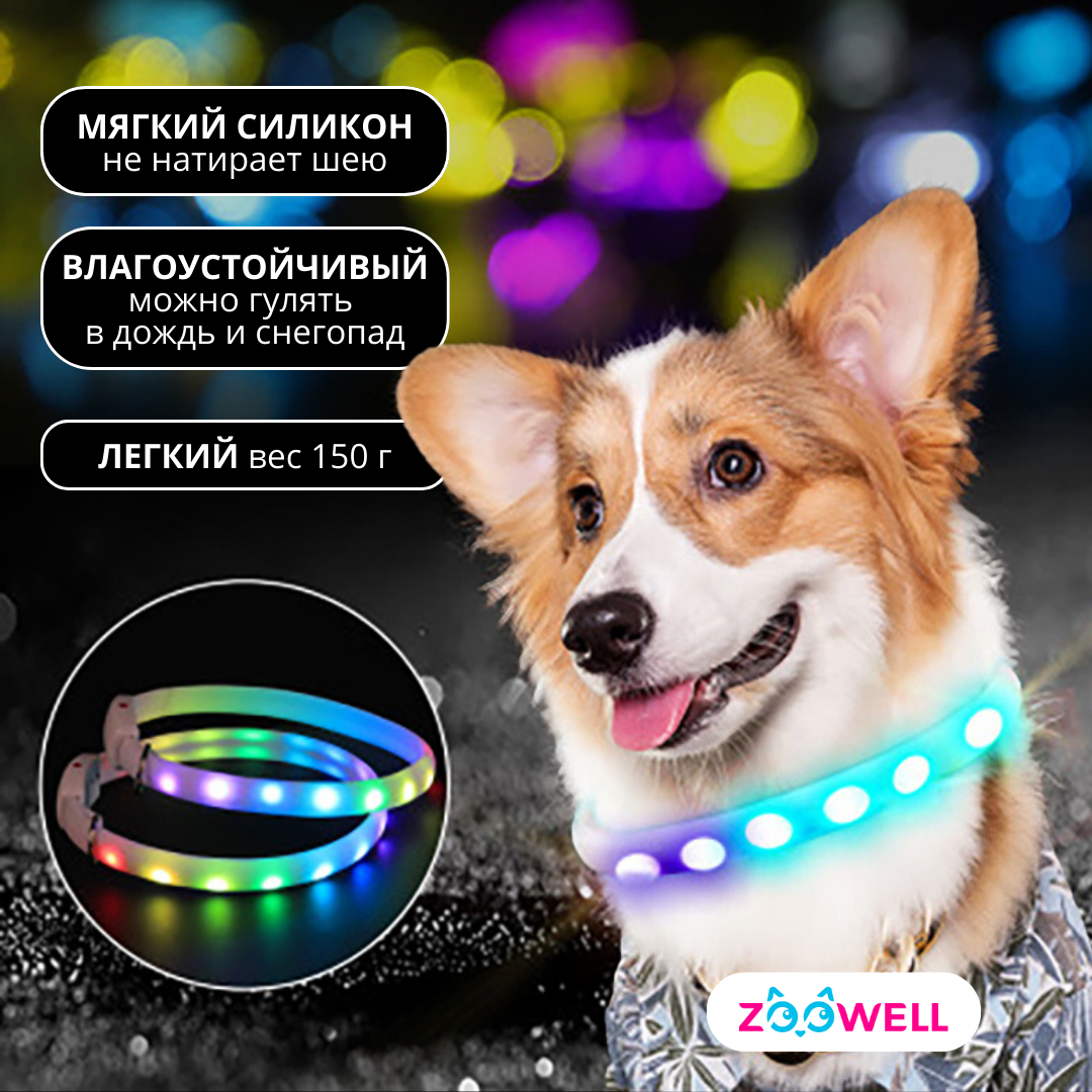 Ошейник светящийся для собак LED, 55см, для выгула в темное время суток ZOOWELL