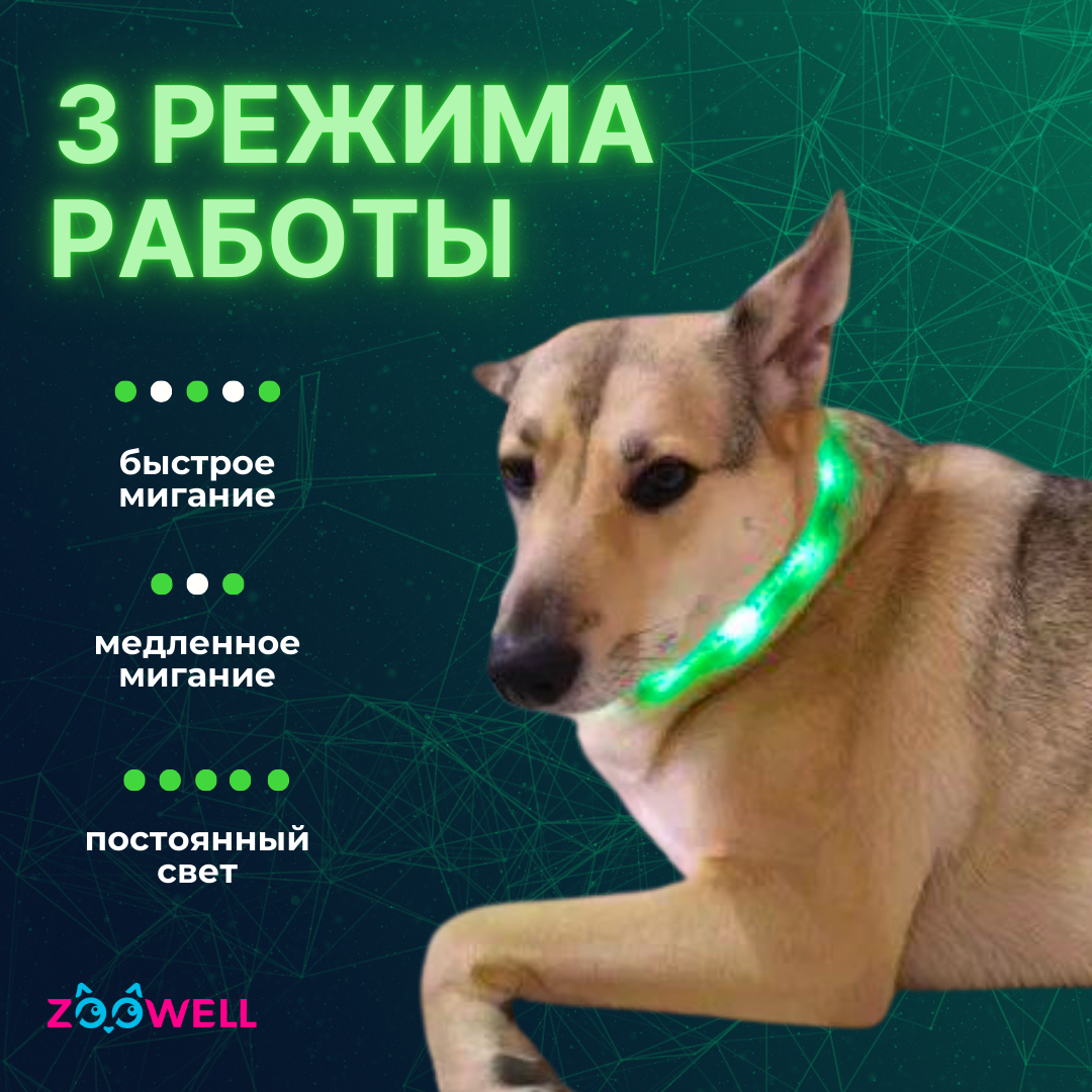 СохранитьОшейник для собак/ светящийся ошейник/ собачий ошейник LED 55 см с принтом зеленый , ZOOWELL интересное: