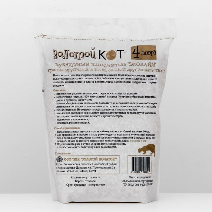 Наполнитель кукурузный "Золотой кот"премиум, 4 л интересное: