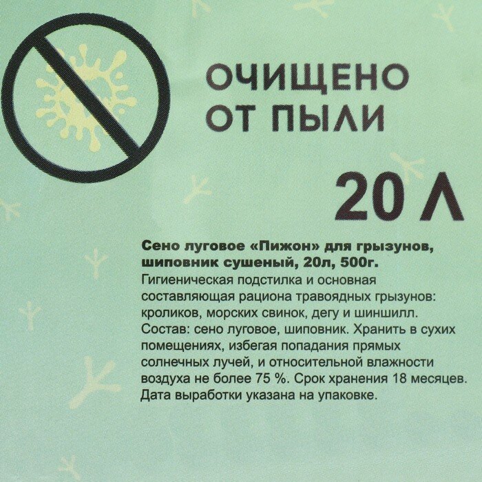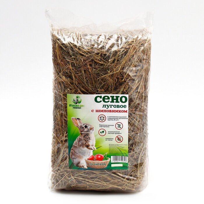 Сено луговое с плодами шиповника «Пижон» для грызунов, 20 л, 500 г интересное: